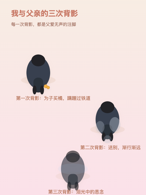 提示词:阅读全文,文中共几次父亲的背影?分别有何深意,输出 SVG 格式,3:4,小红书风格:——省略 1328 字