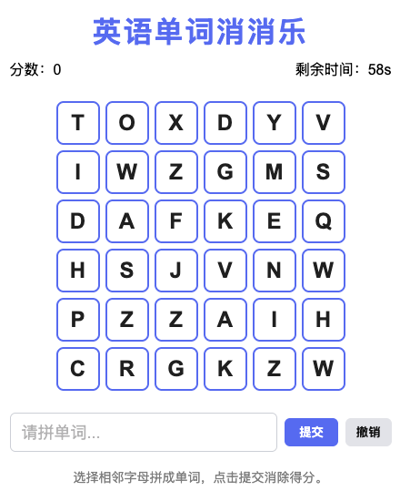 测试 5:设计单词消消乐游戏