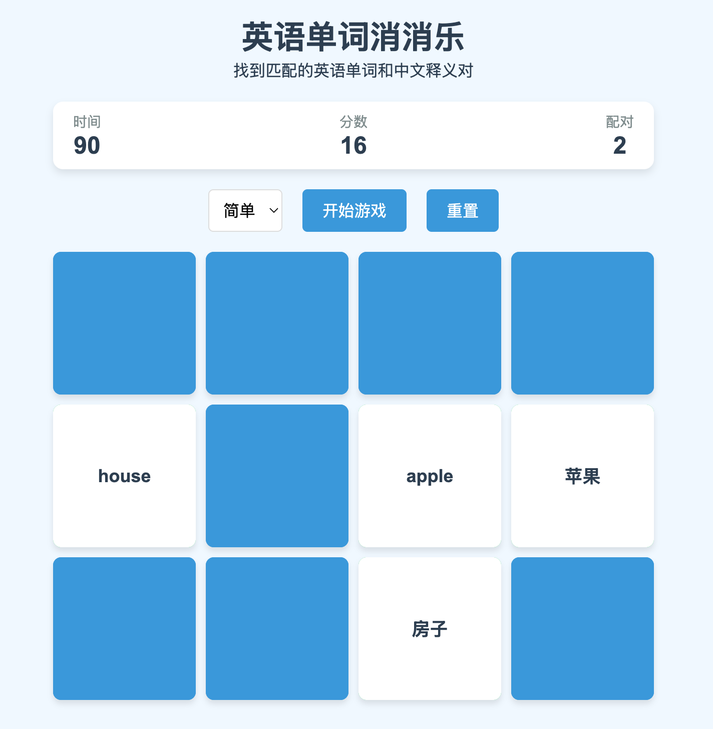 翻转卡片找配对的单词和中文