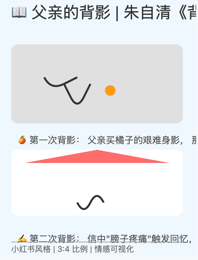 提示词:阅读全文,文中共几次父亲的背影?分别有何深意,输出 SVG 格式,3:4,小红书风格:——省略 1328 字