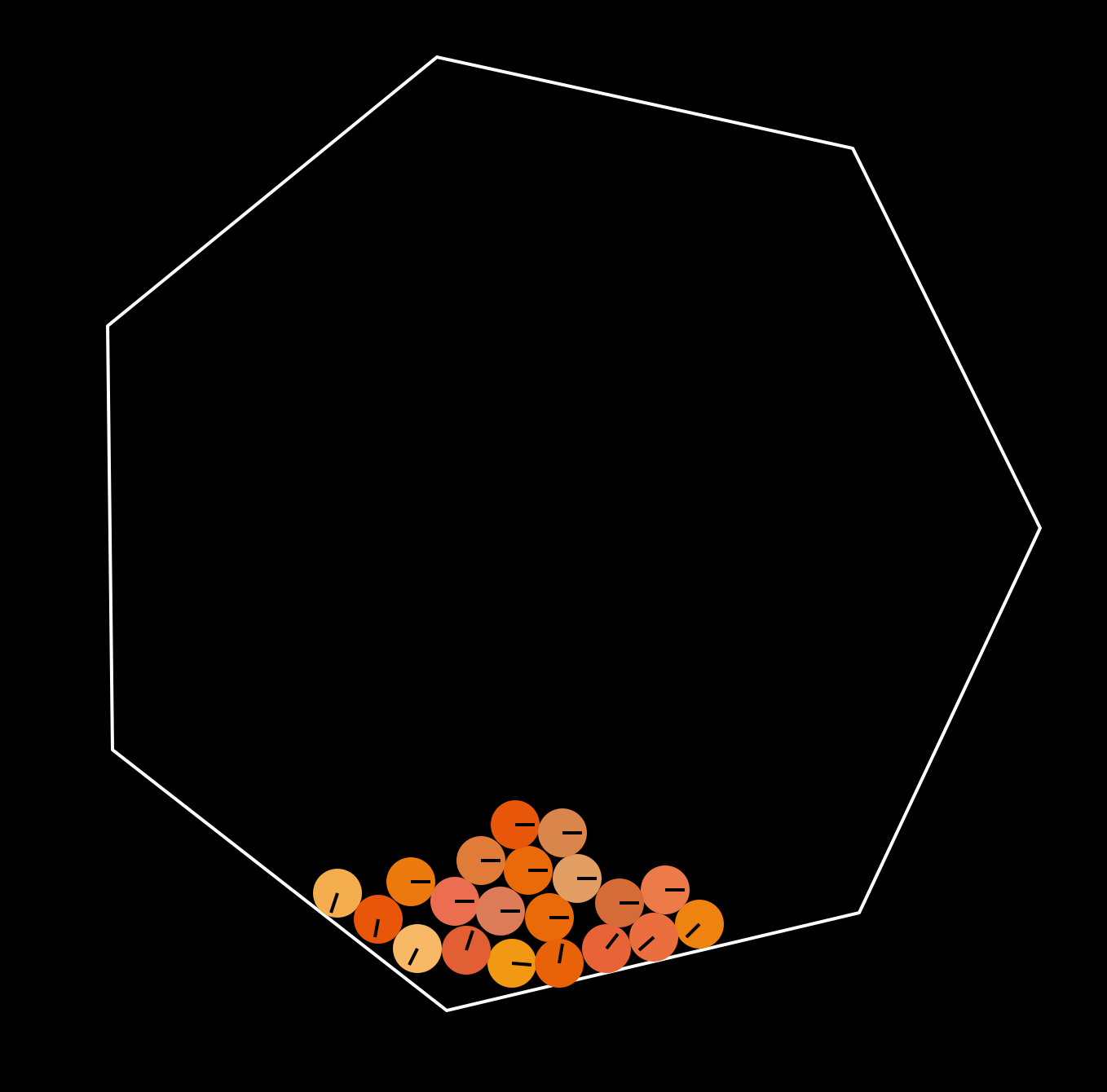 - 七边形的尺寸应足够大,可以容纳所有小球。
