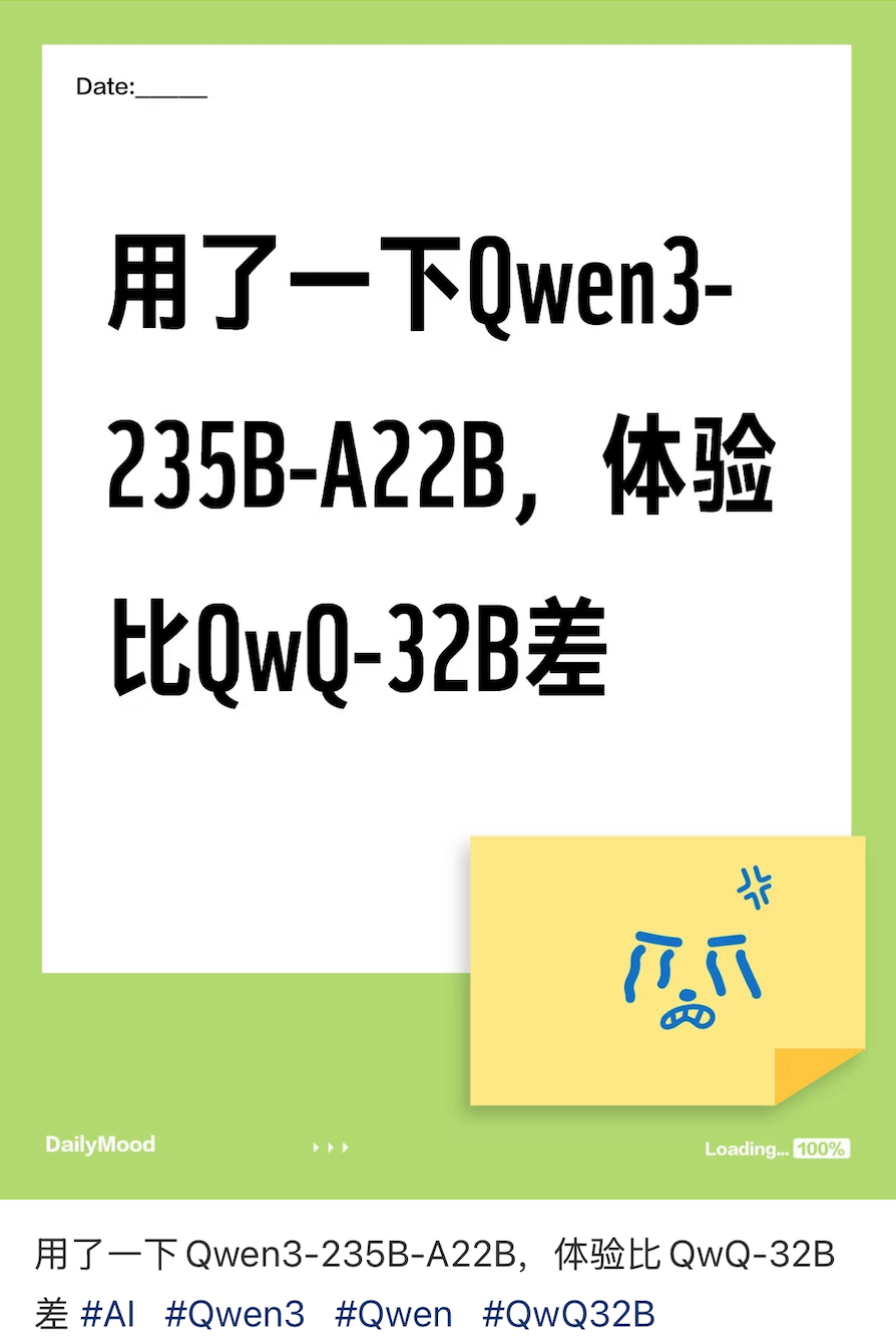 看 xhs 有人说体感甚至不如 QwQ-32B,上面三个独立测评中也提到,某些领域 Qwen3 确实不如 QwQ,我就找几个问题测试一下,大家也感受感受