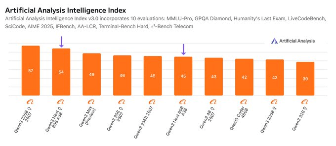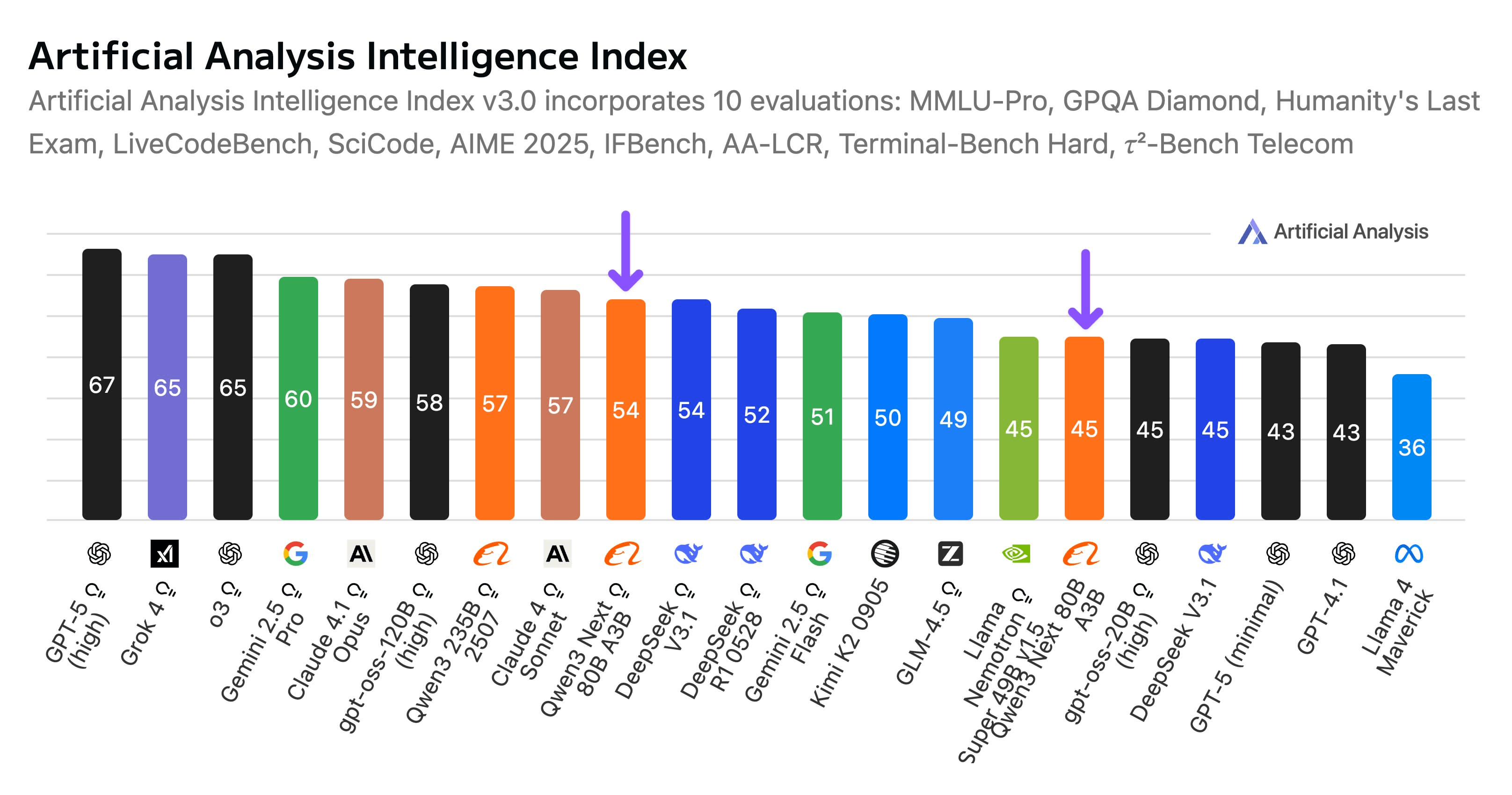 阿里巴巴 Qwen3 Next 80B:一款开源权重混合推理模型,仅用 3B 活跃参数即可达到 DeepSeek V3.1 级别的智能水平