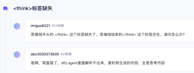 2 是 think 标签缺失,导致整个思考过程无法被识别,直接被打印,而非可隐藏