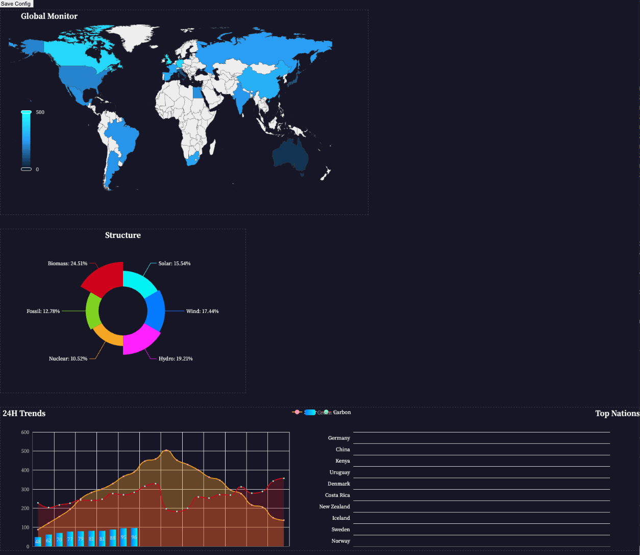 Gemini-3-Pro 生成的事全球清洁能源与碳排放实时监控指挥中心仪表盘,这很谷歌