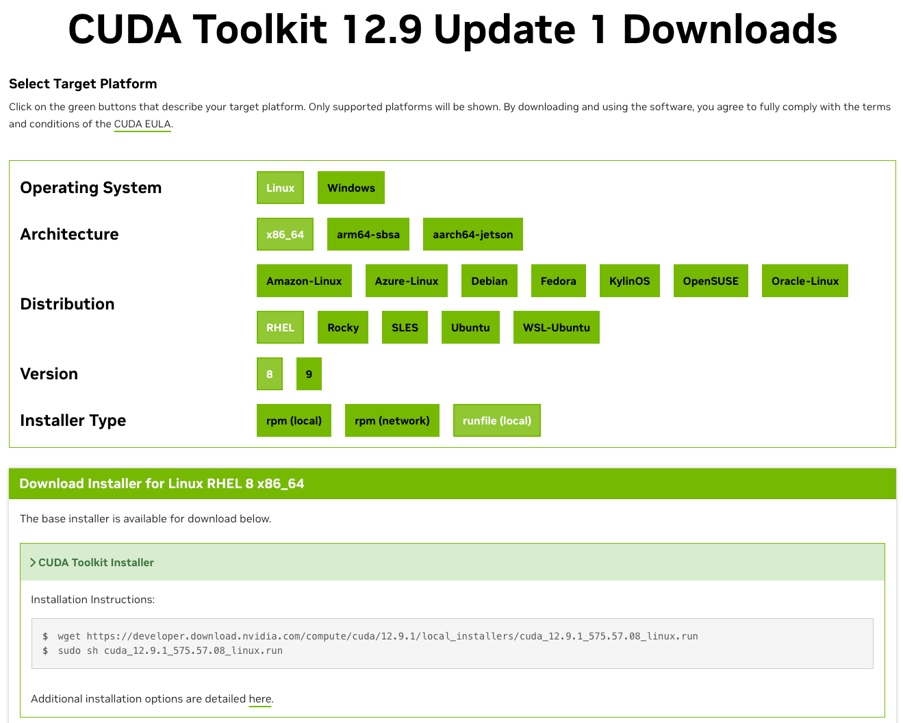 https://developer.nvidia.com/cuda-12-9-1-download-archive?target_os=Linux&target_arch=x86_64&Distribution=RHEL&target_version=8&target_type=runfile_local